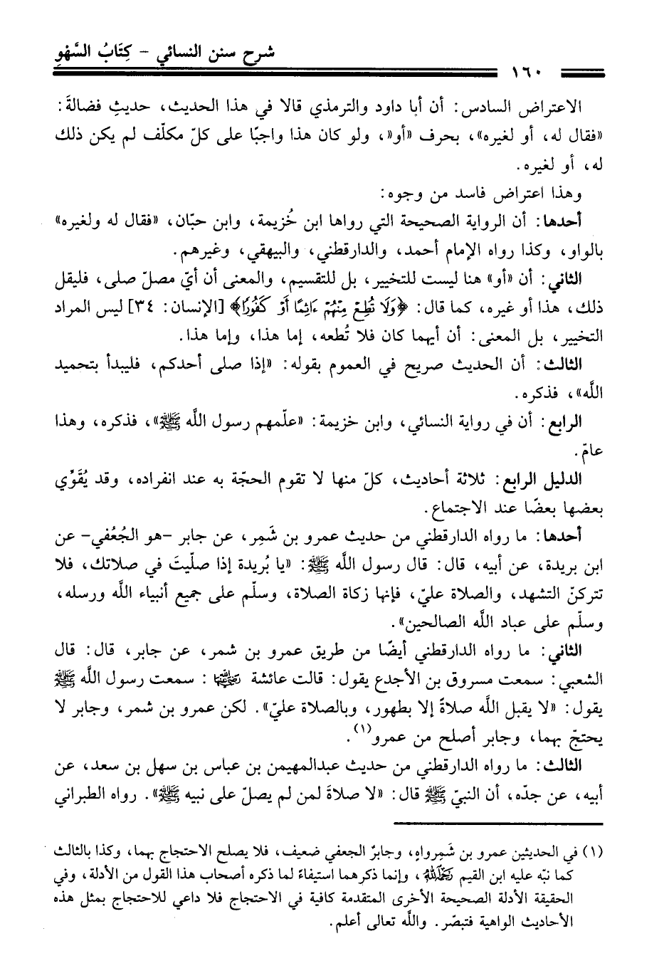 (¬1) في الحديثين عمرو بن شَمِر واهٍ، وجابرٌ الجعفي ضعيف، فلا يصلح الاحتجاج بهما، وكذا بالثالث كما نبّه عليه ابن القيم رحمه الله، وإنما ذكرهما استيفاءً لما ذكره أصحاب هذا القول من الأدلة، وفي الحقيقة الأدلة الصحيحة الأخرى المتقدمة كافية في الاحتجاج فلا داعي للاحتجاج بمثل هذه الأحاديث الواهية فتبصّر. والله تعالى أعلم.