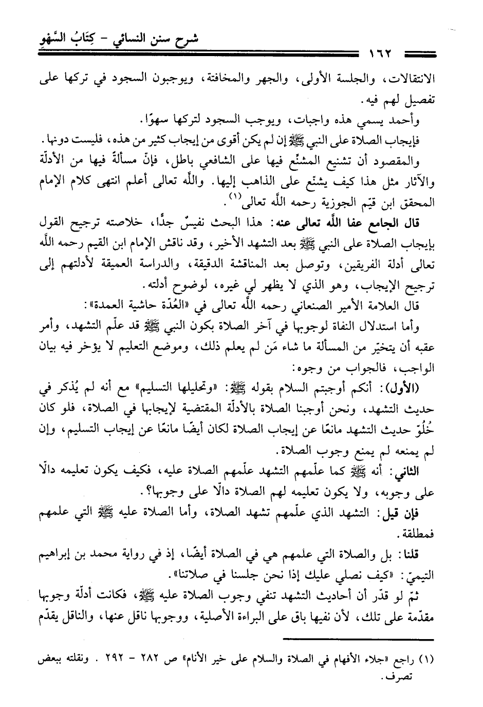 قال الجامع عفا الله تعالى عنه: هذا البحث نفيسٌ جدّاً، خلاصته ترجيح القول بإيجاب الصلاة على النبي -صلى الله عليه وسلم- بعد التشهد الأخير، وقد ناقش الإمام ابن القيم رحمه الله تعالى أدلة الفريقين، وتوصل بعد المناقشة الدقيقة، والدراسة العميقة لأدلتهم إلى ترجيح الإيجاب، وهو الذي لا يظهر لي غيره، لوضوح أدلته.