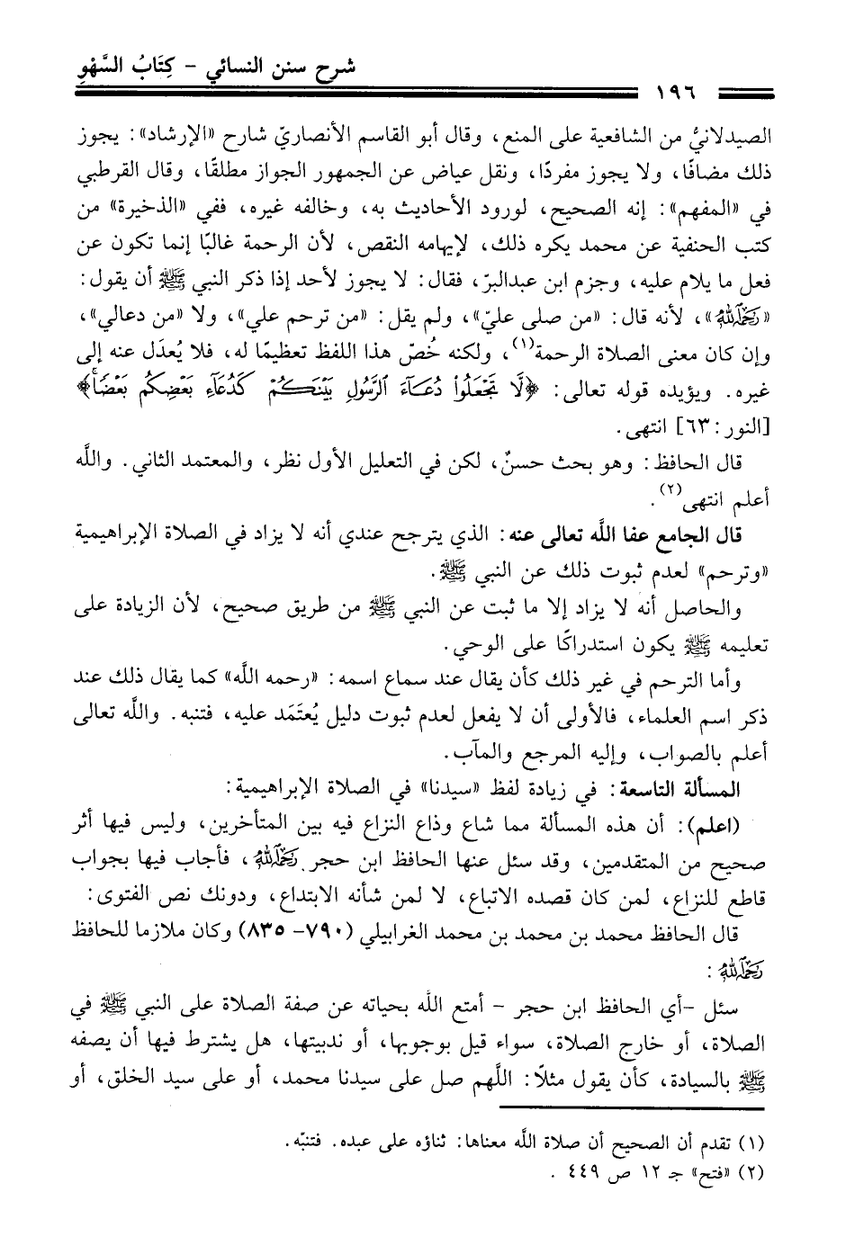 المسألة التاسعة: في زيادة لفظ "سيدنا" في الصلاة الإبراهيمية: