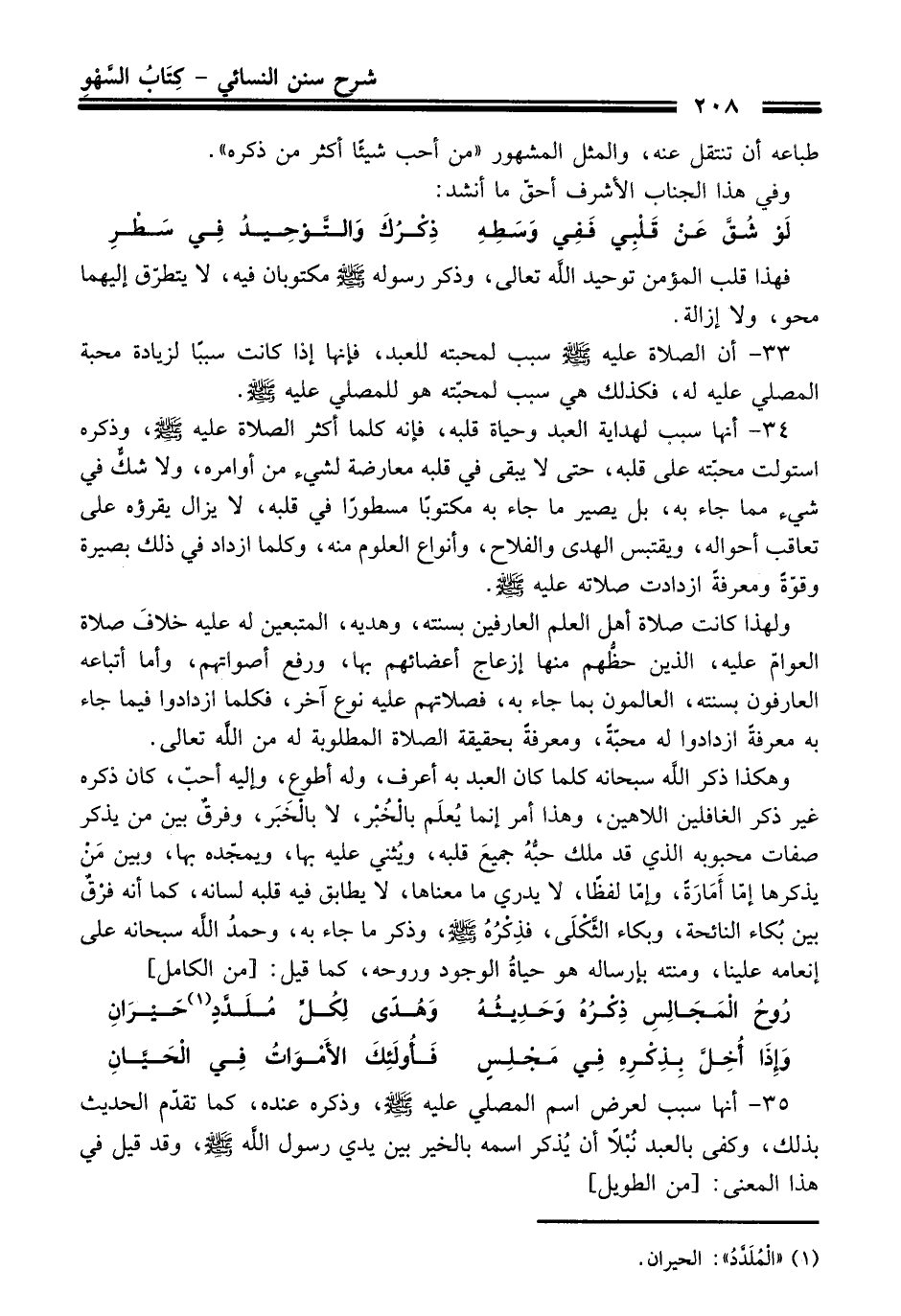 رُوحُ الْمَجَالِسِ ذِكْرُهُ وَحَدِيثُهُ ... وَهُدًى لِكُلِّ مُلَدَّدٍ (¬1) حَيْرَانِ