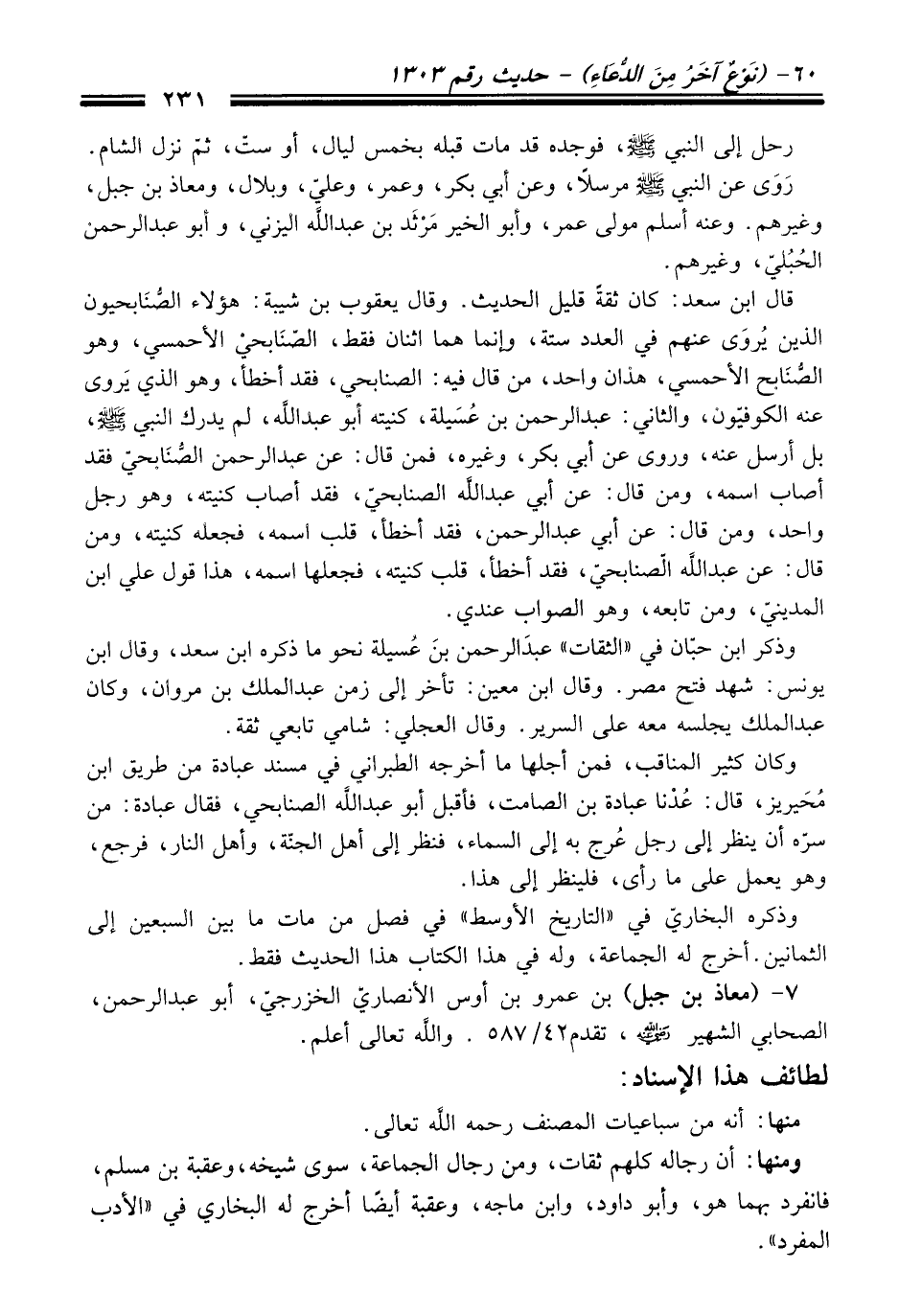 7 - (معاذ بن جبل) بن عمرو بن أوس الأنصاريّ الخزرجيّ، أبو عبد الرحمن، الصحابي الشهير -رضي الله عنه-، تقدم 42/ 587. والله تعالى أعلم.