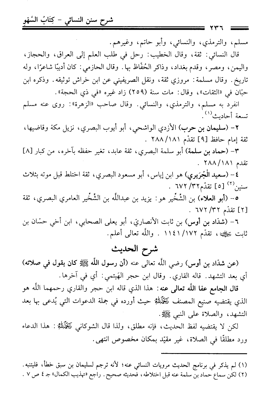(¬1) لم يذكر في برنامج الحديث مرويات النسائي عنه؛ لأنه ترجم لسليمان بن سبق خطأ، فليتنبه.