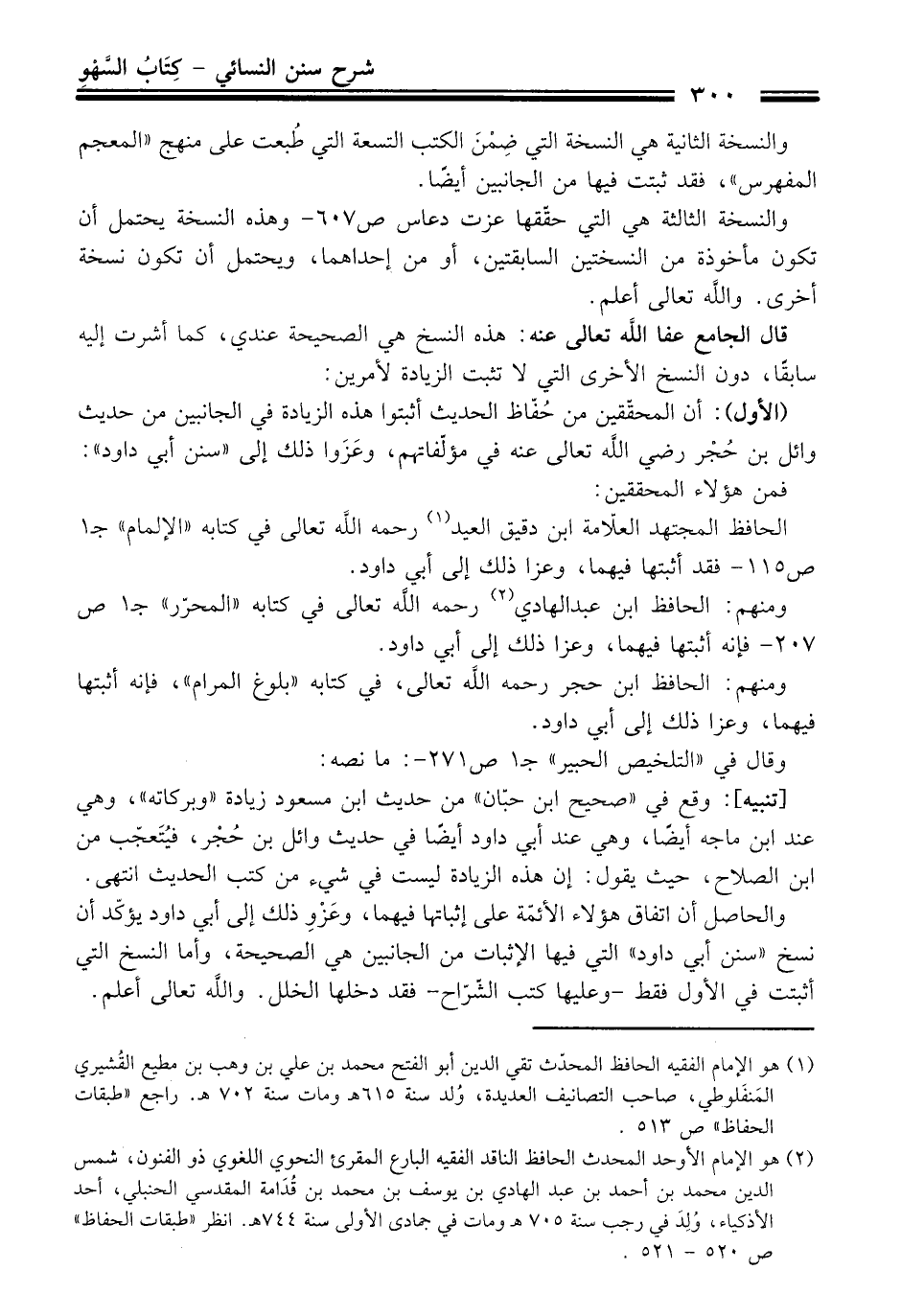 ومنهم: الحافظ ابن عبد الهادي (¬2) رحمه الله تعالى في كتابه "المحرّر" جـ 1 ص 207 - فإنه أثبتها فيهما، وعزا ذلك إلى أبي داود،