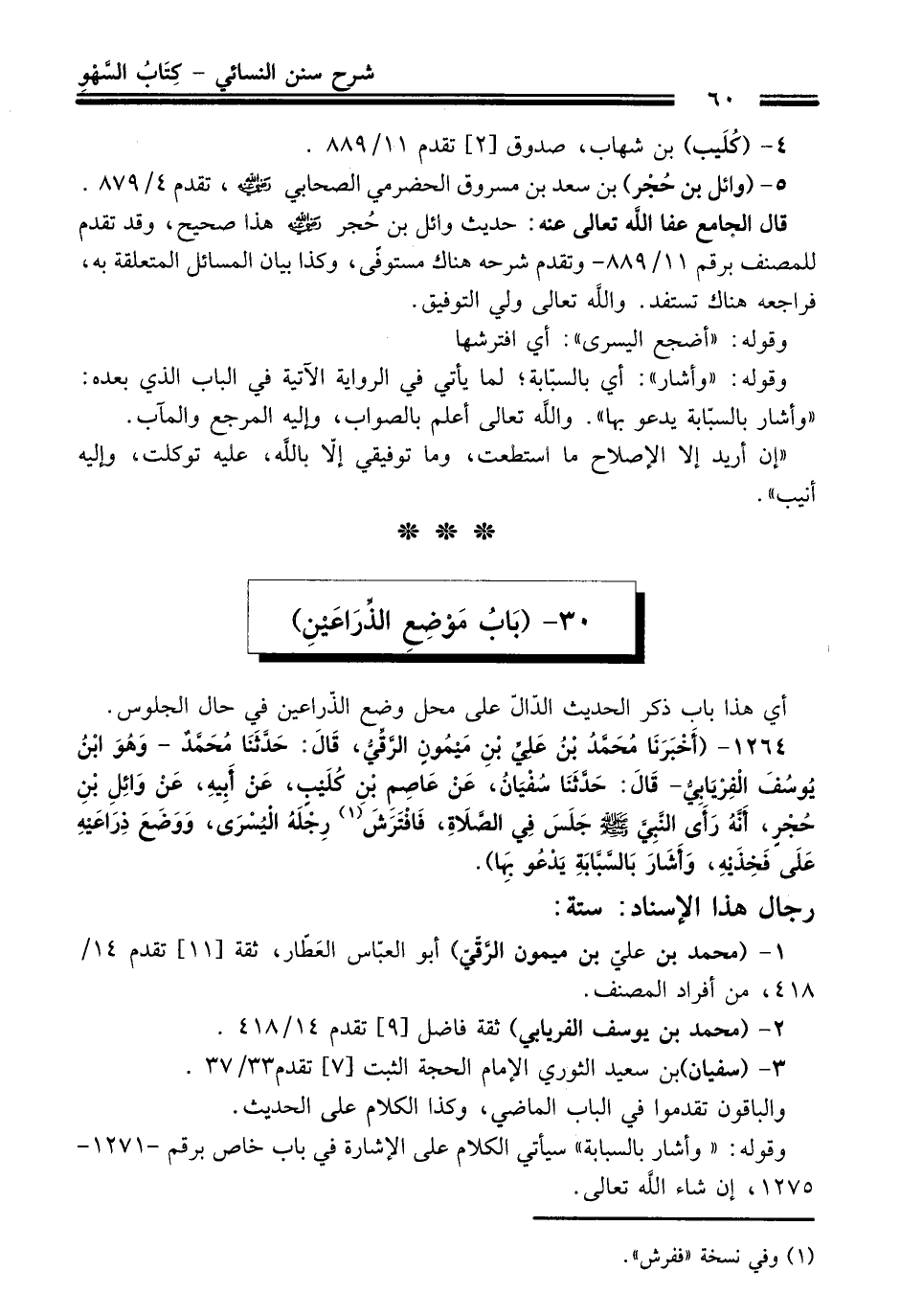 30 - (باب مَوْضِعِ الذِّرَاعَيْنِ)