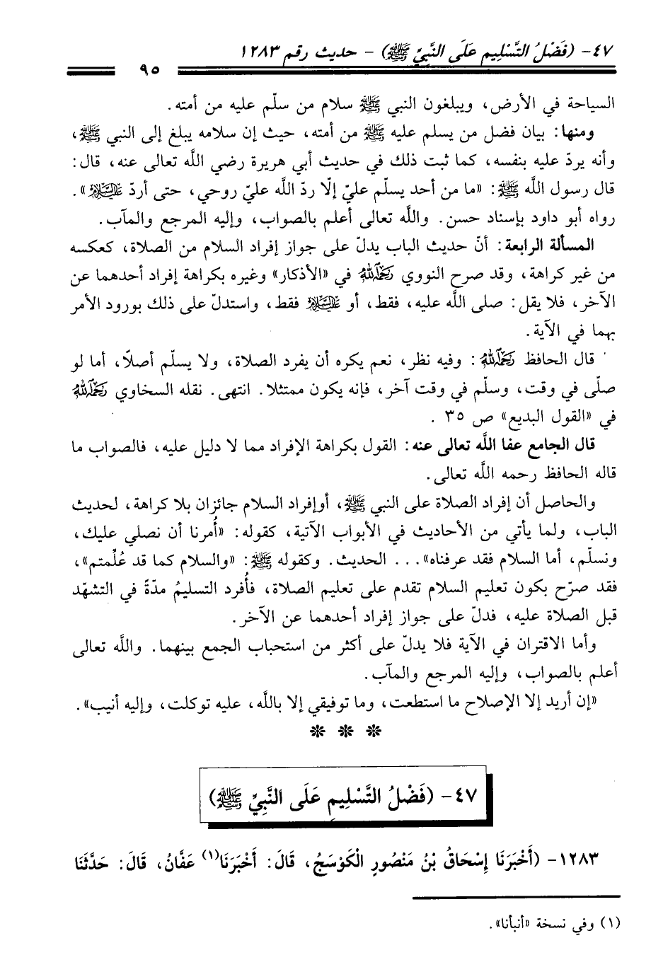 47 - (فَضْلِ التَّسْلِيمِ عَلَى النَّبِيِّ -صلى الله عليه وسلم-)