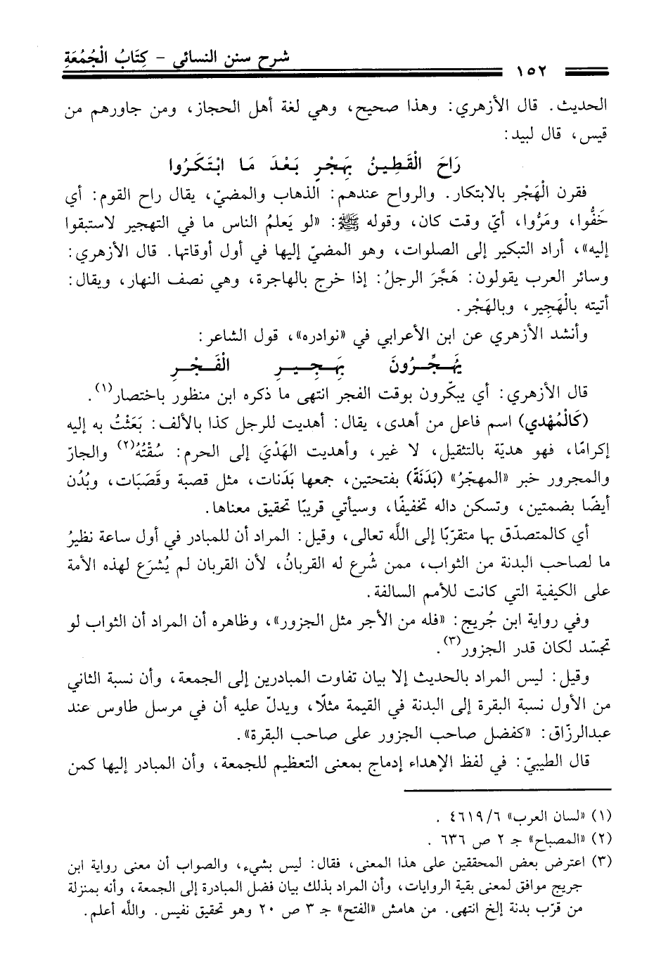 (¬3) اعترض بعض المحققين على هذا المعنى، فقال: ليس بشيء، والصواب أن معنى رواية ابن جريج موافق لمعنى بقية الروايات، وأن المراد بذلك بيان فضل المبادرة إلى الجمعة، وأنه بمنزلة من قرّب بدنة إلخ انتهى. من هامش "الفتح" جـ 3 ص 20 وهو تحقيق نفيس. والله أعلم.