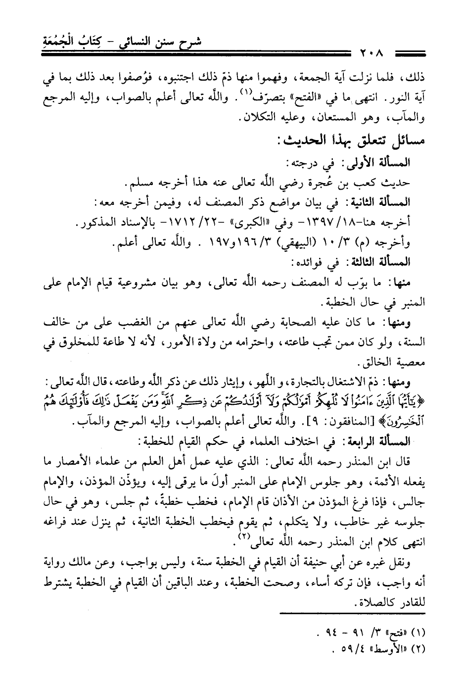 ذلك، فلما نزلت آية الجمعة، وفهموا منها ذمّ ذلك اجتنبوه، فوُصفوا بعد ذلك بما في آية النور. انتهى ما في "الفتح" بتصرّف (¬1). والله تعالى أعلم بالصواب، وإليه المرجع والمآب، وهو المستعان، وعليه التكلان.
