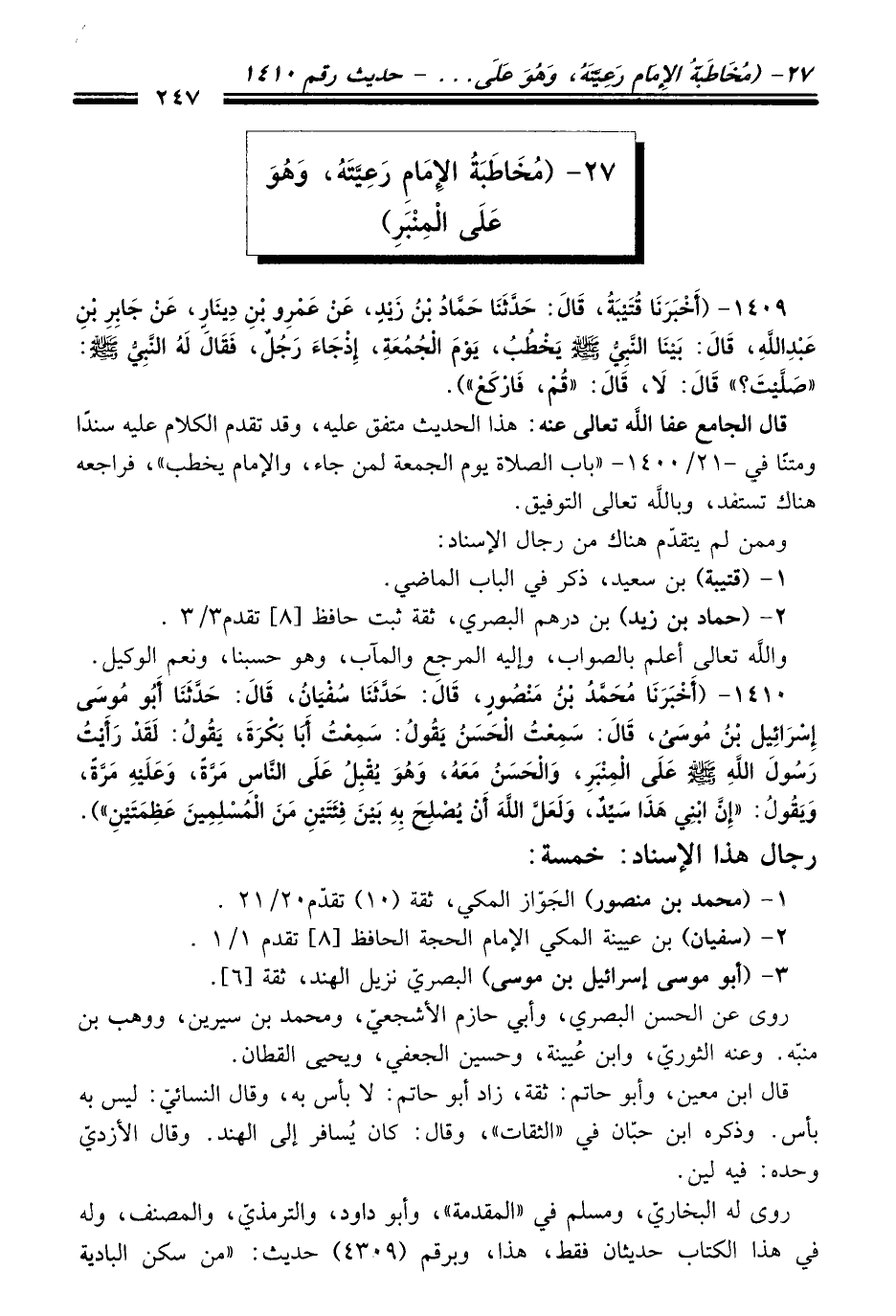 27 - (مُخَاطَبَةِ الإِمَامِ رَعِيَّتَهُ، وَهُوَ عَلَى الْمِنْبَرِ)