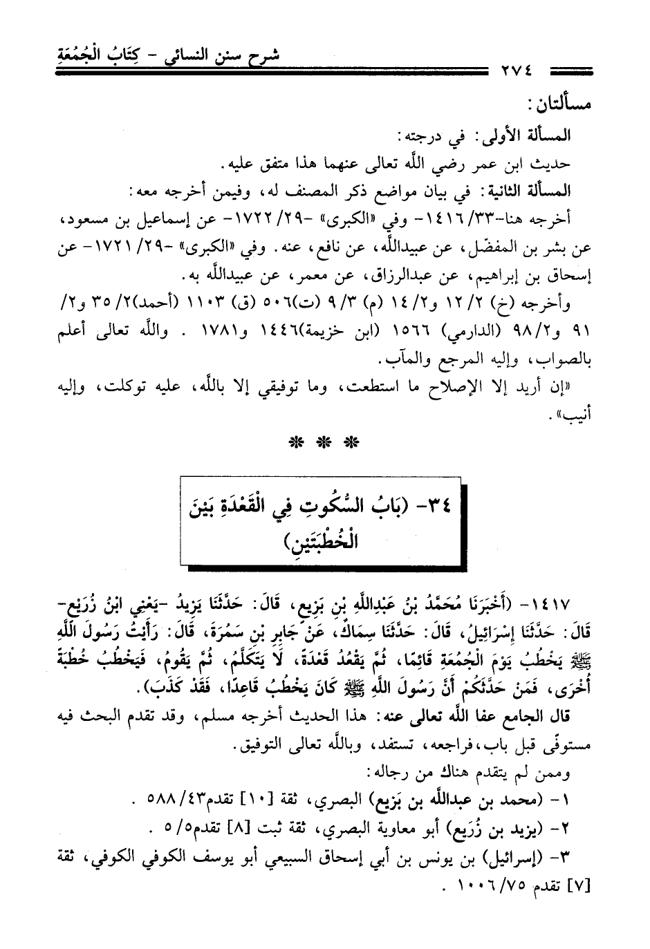34 - (بَابُ السُّكُوتِ فِي القَعْدَةِ بَيْنَ الْخُطْبَتَيْنِ)