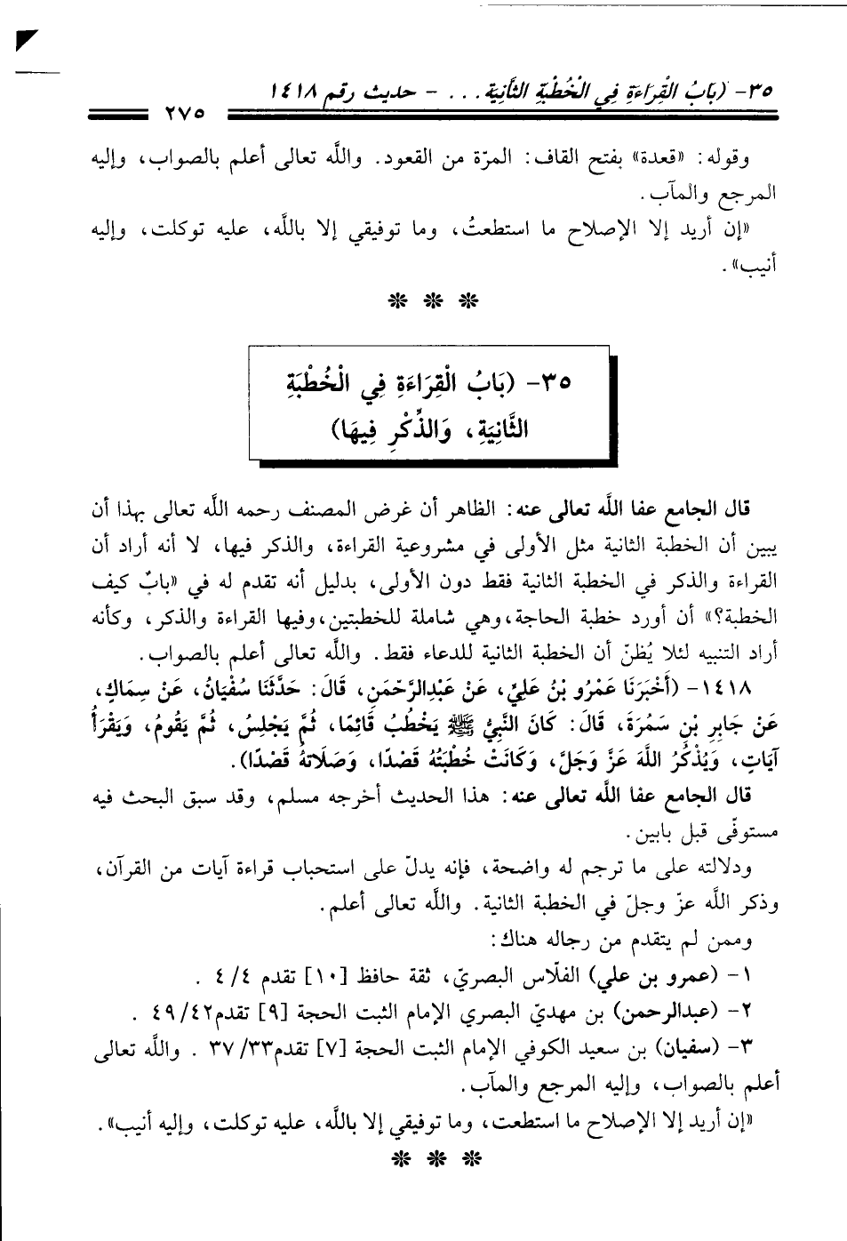 35 - (بَابُ القِرَاءَةِ في الْخُطْبَةِ الثَّانِيَةِ، وَالذِّكْرِ فِيهَا)