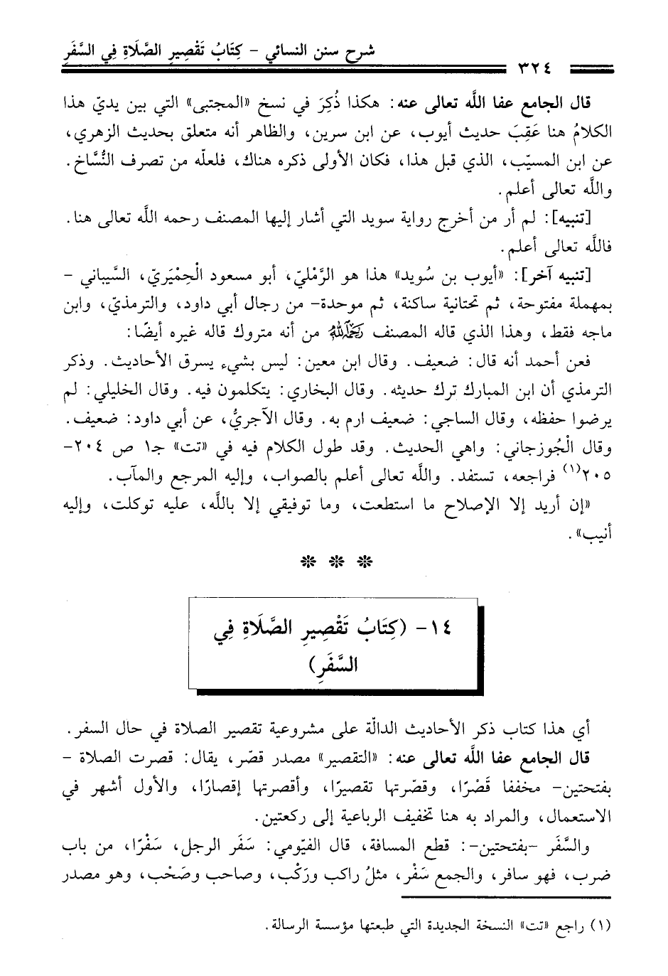 14 - (كِتَابُ تَقْصِيرِ الصَّلَاةِ فِي السَّفَرِ)