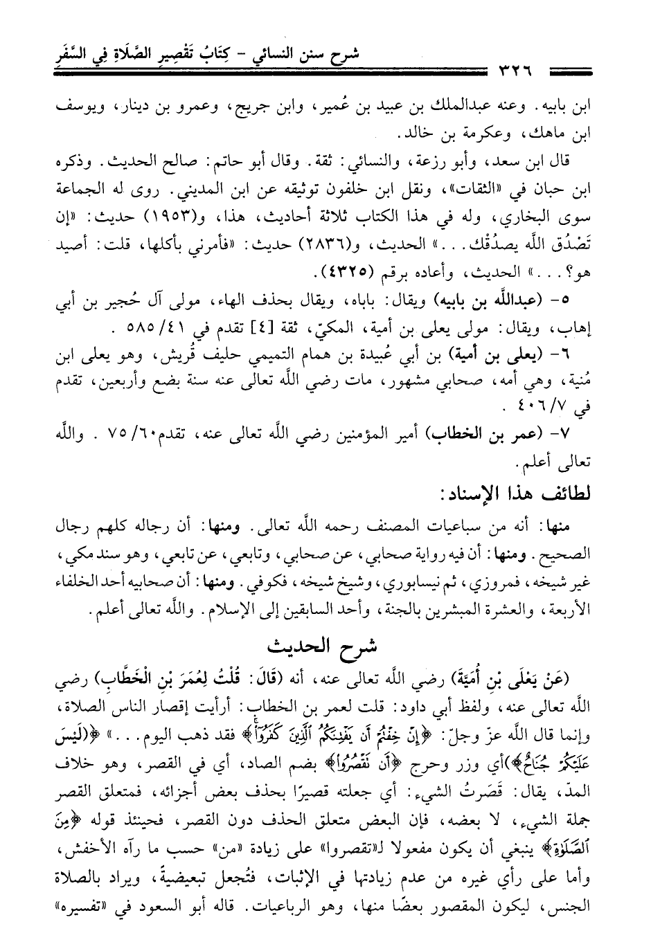 (عَنْ يَعْلَى بْنِ أمَيَةَ) - رضي اللَّه تعالى عنه -، أنه (قَالَ: قُلْتُ لِعُمَرَ بْنِ الْخَطَّاب) - رضي اللَّه تعالى عنه -، ولفظ أبي داود: قلت لعمر بن الخطاب: أرأيت إقصار الناسَ الصلاة، وإنما قال اللَّه -عَزَّ وَجَلَّ-: {إِنْ خِفْتُمْ أَنْ يَفْتِنَكُمُ الَّذِينَ كَفَرُوا} فقد ذهب اليوم ... " {لَيْسَ عَلَيْكُمْ جُنَاحٌ} أي وزر وحرج {أَنْ تَقْصُرُوا} بضم الصاد، أي في القصر، وهو خلاف المدّ، يقال: قَصَرتُ الشيء: أي جعلته قصيرًا بحذف بعض أجزائه، فمتعلق القصر جملة الشيء، لا بعضه، فإن البعض متعلق الحذف دون القصر، فحينئذ قوله {مِنَ الصَّلَاةِ} ينبغي أن يكون مفعولا لـ"تقصروا" على زيادة "من" حسب ما رآه الأخفش، وأما على رأي غيره من عدم زيادتها في الإثبات، فتُجعل تبعيضيةً، ويراد بالصلاة الجنس، ليكون المقصور بعضًا منها، وهو الرباعيات. قاله أبو السعود في "تفسيره"