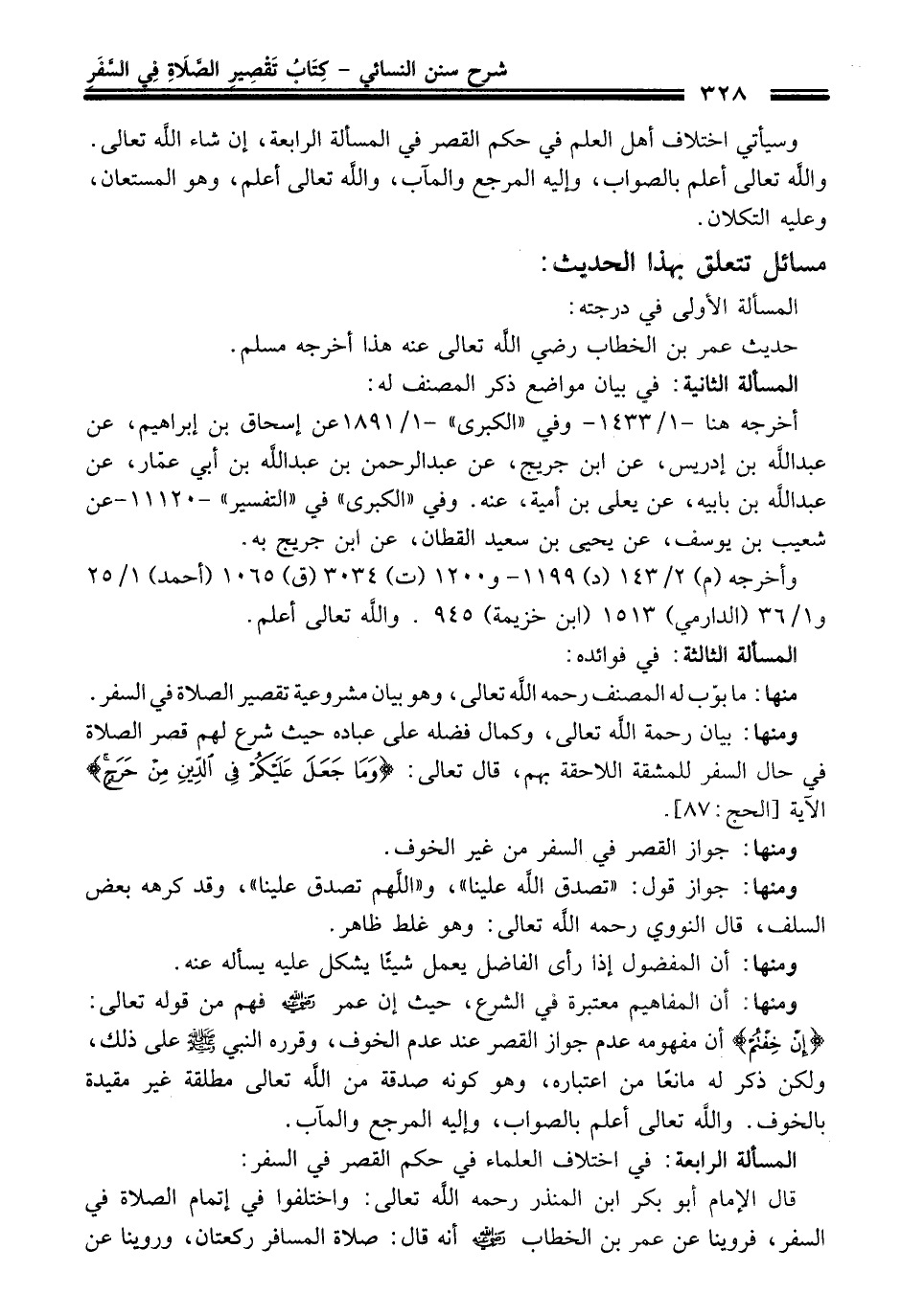 وسيأتي اختلاف أهل العلم في حكم القصر في المسألة الرابعة، إن شاء اللَّه تعالى. واللَّه تعالى أعلم بالصواب، وإليه المرجع والمآب، واللَّه تعالى أعلم، وهو المستعان، وعليه التكلان.