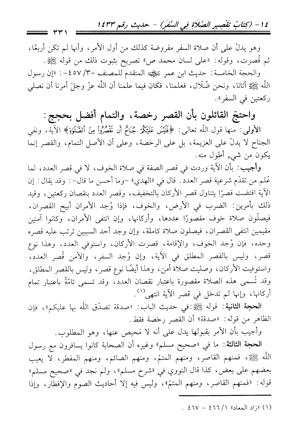 (¬1) "زاد المعاد" 1/ 466 - 467.