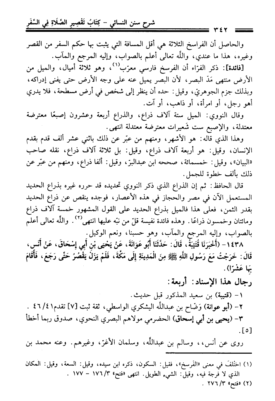 1438 - (أَخْبَرَنَا قُتَيْبَةُ, قَالَ: حَدَّثَنَا أَبُو عَوَانَةَ, عَنْ يَحْيَى بْنِ أَبِي إِسْحَاقَ, عَنْ أَنَسٍ, قَالَ: خَرَجْتُ مَعَ رَسُولِ اللَّهِ -صلى الله عليه وسلم- مِنَ الْمَدِينَةِ إِلَى مَكَّةَ, فَلَمْ يَزَلْ يَقْصُرُ حَتَّى رَجَعَ, فَأَقَامَ بِهَا عَشْرًا).