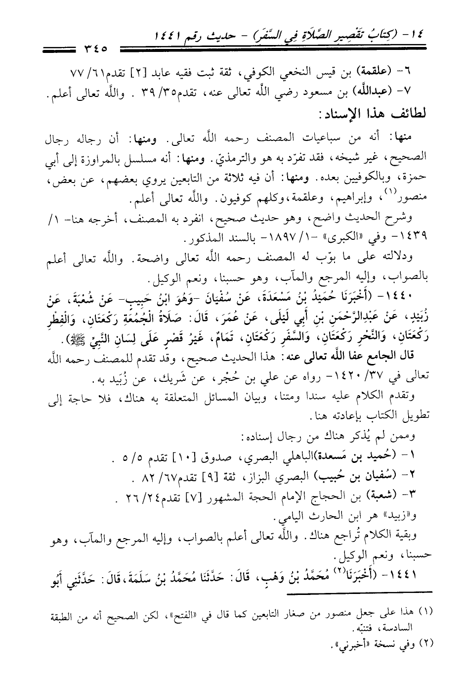 رَكْعَتَانِ، وَالنَّحْرِ رَكْعَتَانِ، وَالسَّفَرِ رَكْعَتَانِ، تَمَامٌ، غَيْرُ قَصْرِ عَلَى لِسَانِ النَّبِيِّ - صلي اللَّه عليه وسلم -).