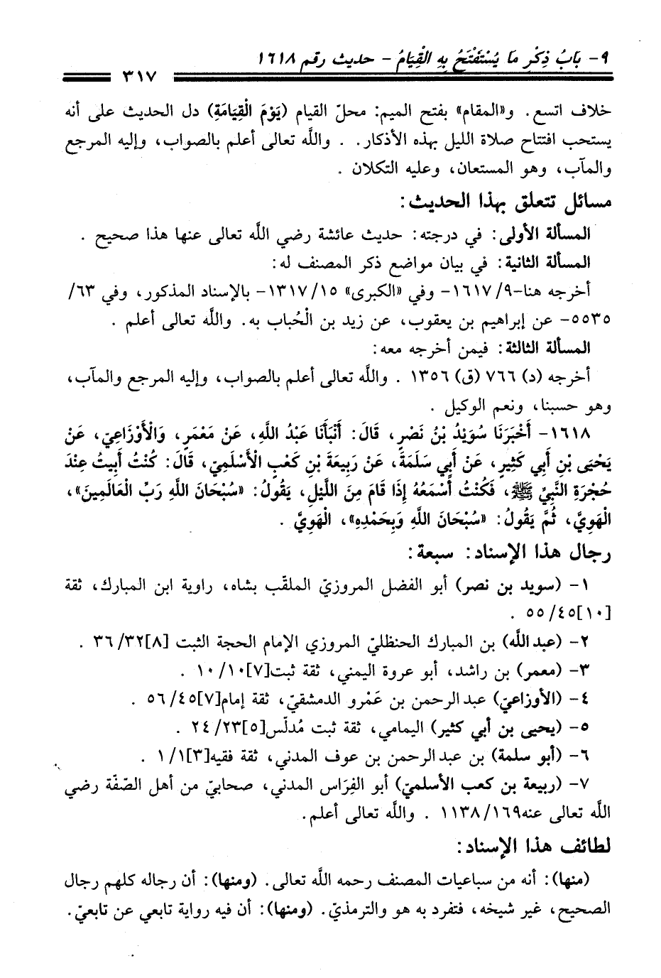 1618 - أَخْبَرَنَا سُوَيْدُ بْنُ نَصْرٍ, قَالَ: أَنْبَأَنَا عَبْدُ اللَّهِ, عَنْ مَعْمَرٍ, وَالأَوْزَاعِيِّ عَنْ يَحْيَى بْنِ أَبِي كَثِيرٍ, عَنْ أَبِي سَلَمَةَ عَنْ رَبِيعَةَ بْنِ كَعْبٍ الأَسْلَمِيِّ, قَالَ: كُنْتُ أَبِيتُ عِنْدَ حُجْرَةِ النَّبِيِّ - صلى اللَّه عليه وسلم -, فَكُنْتُ أَسْمَعُهُ إِذَا قَامَ مِنَ اللَّيْلِ, يَقُولُ: «سُبْحَانَ اللَّهِ رَبِّ الْعَالَمِينَ» , الْهَوِيَّ, ثُمَّ يَقُولُ: «سُبْحَانَ اللَّهِ وَبِحَمْدِهِ» , الْهَوِيَّ.