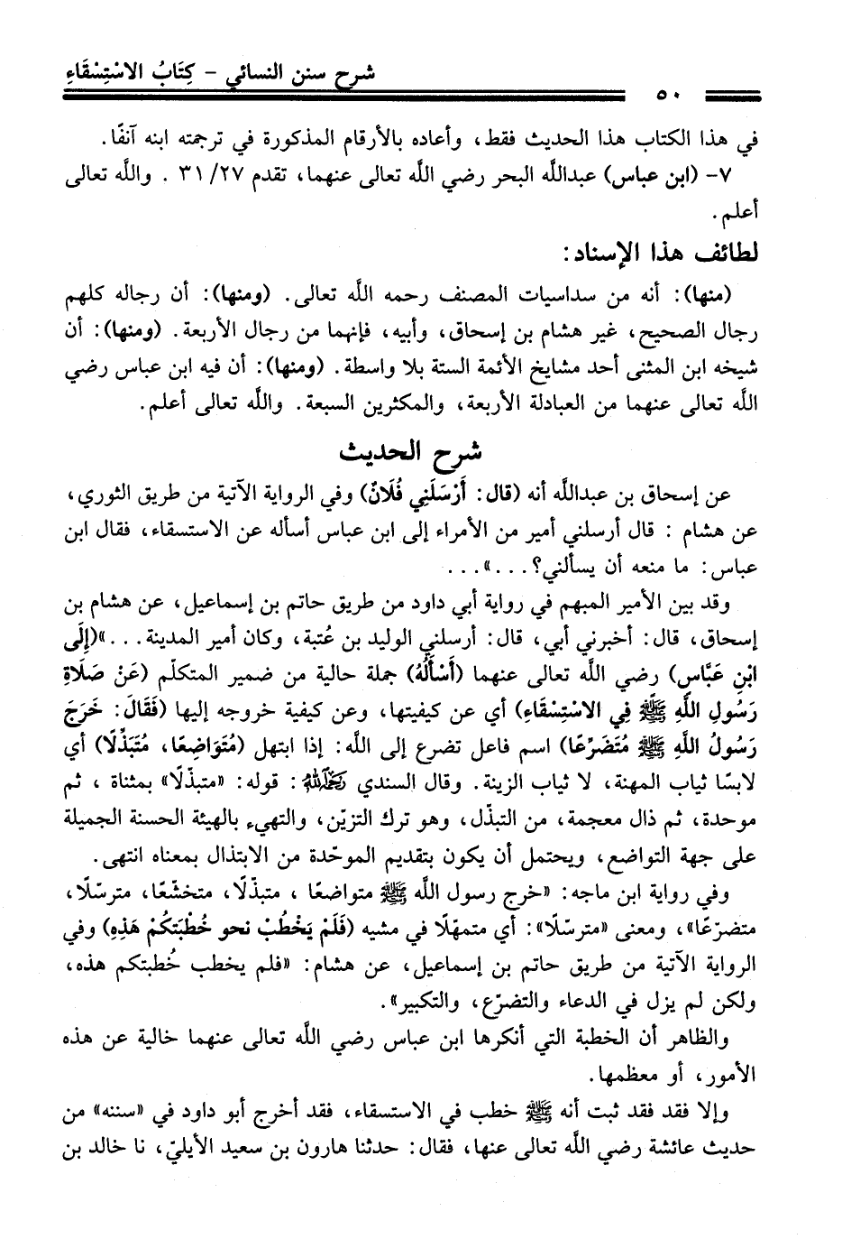 (منها): أنه من سداسيات المصنف -رحمه اللَّه تعالى-. (ومنها): أن رجاله عندهم رجال الصحيح، غير هشام بن إسحاق، وأبيه، فإنهما من رجال الأربعة. (ومنها): أن شيخه ابن المثنى أحد مشايخ الأئمة الستة بلا واسطة. (ومنها): أن فيه ابن عباس - رضي اللَّه تعالى عنهما - من العبادلة الأربعة، والمكثرين السبعة. واللَّه تعالى أعلم.