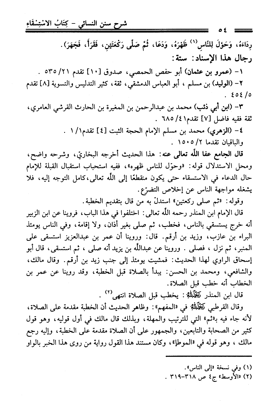 قال الجامع - عفا اللَّه تعالى عنه -: هذا الحديث أخرجه البخاريّ، وشرحه واضح، ومحل الاستدلال قوله: "وحوّل للناس ظهره"، ففيه استحباب استقبال القبلة للإمام حال الدعاء في الاستسقاء حتى يكون منقطعًا إلى اللَّه تعالى، كامل التوجه إليه، فلا يشغله مواجهة الناس عن إخلاص التضرّع.