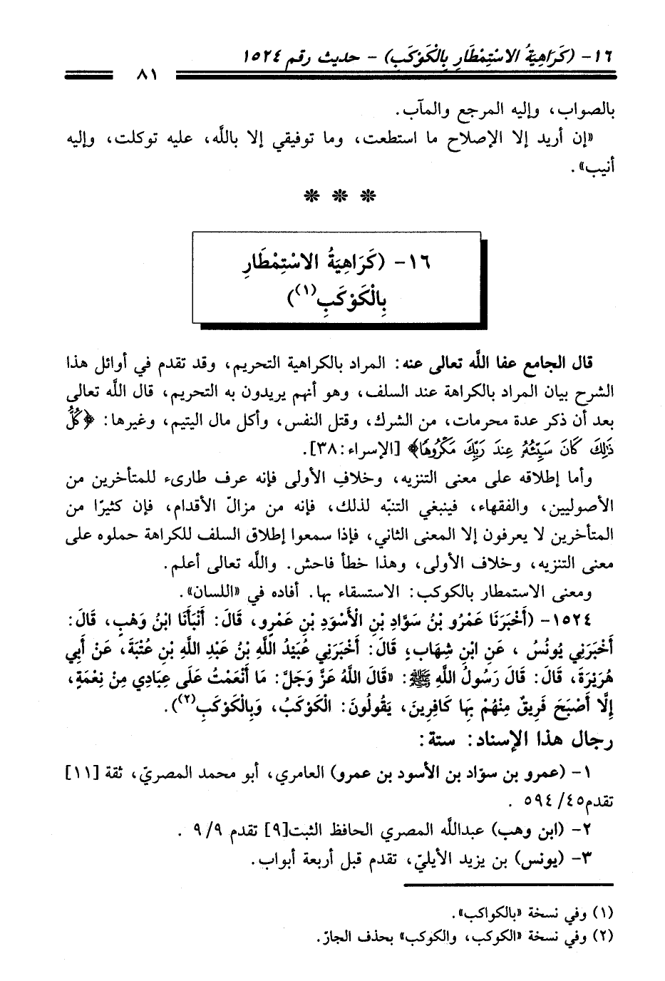 16 - (كَرَاهِيَةُ الاسْتِمْطَارِ بِالْكَوْكَبِ (¬1))
