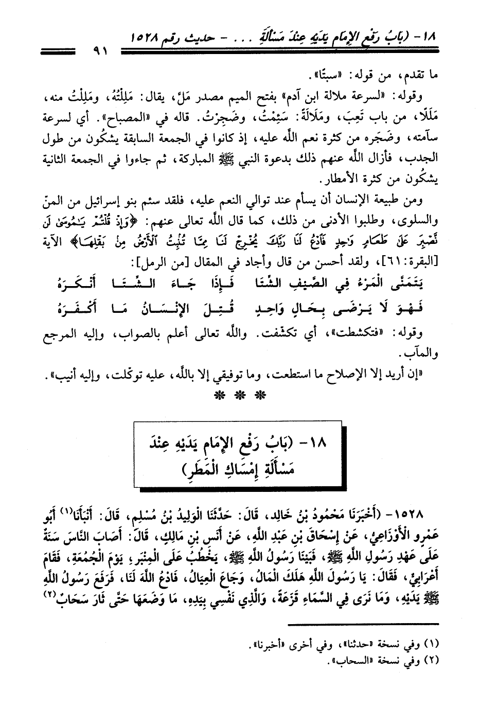 18 - (بَابُ رَفْعِ الإِمَامِ يَدَيْهِ عِنْدَ مَسْأَلَةِ إِمْسَاكِ الْمَطَرِ)