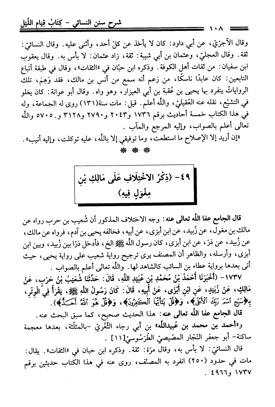 49 - (ذِكْرُ الاخْتِلَافِ عَلَى مَالِكِ بْنِ مِغْوَلٍ فِيهِ)