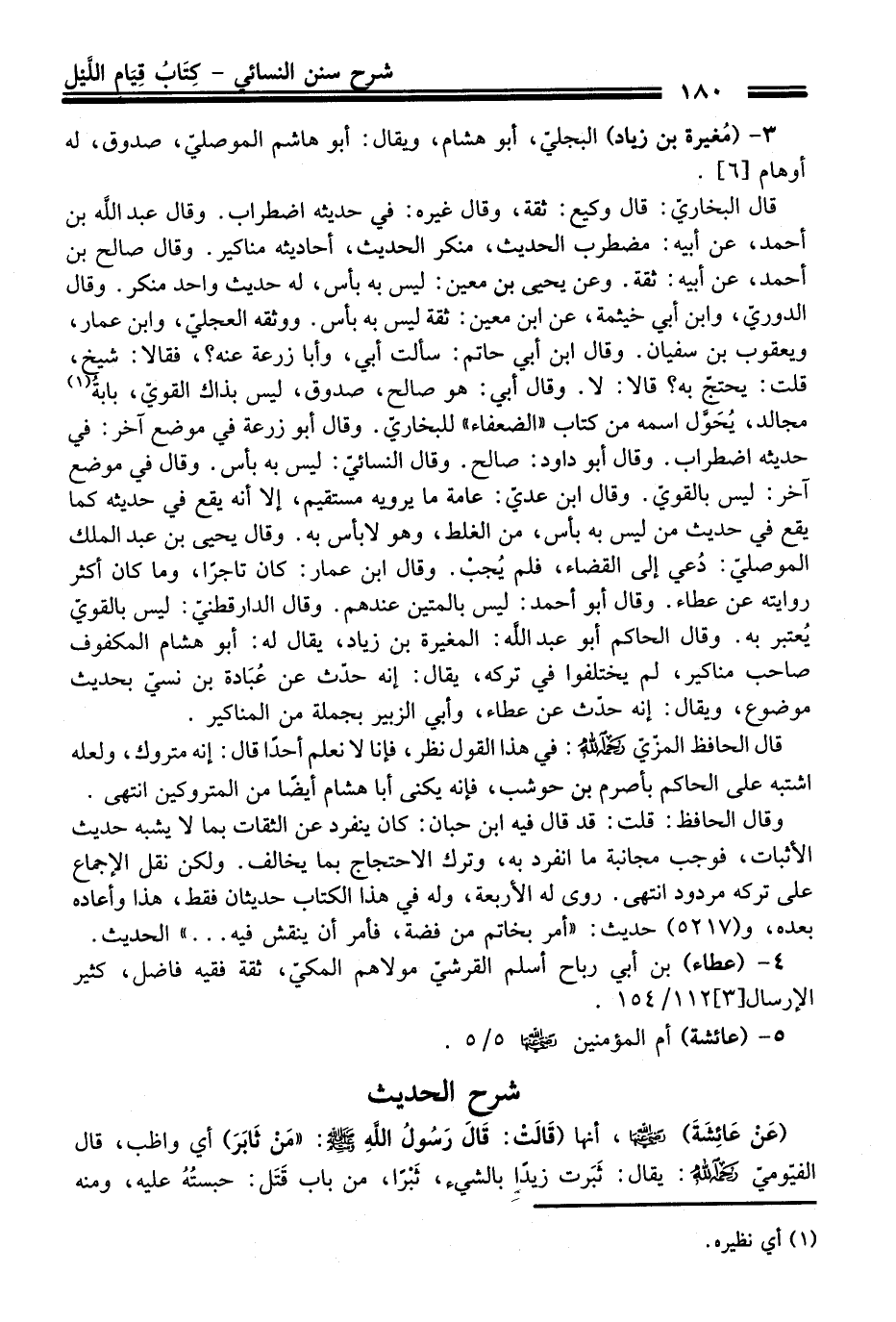 قال البخاريّ: قال وكيع: ثقة، وقال غيره: في حديثه اضطراب. وقال عبد اللَّه بن أحمد، عن أبيه: مضطرب الحديث، منكر الحديث، أحاديثه مناكير. وقال صالح بن أحمد، عن أبيه: ثقة. وعن يحيى بن معين: ليس به بأس، له حديث واحد منكر. وقال الدوريّ، وابن أبي خيثمة، عن ابن معين: ثقة ليس به بأس. ووثقه العجليّ، وابن عمار، ويعقوب بن سفيان. وقال ابن أبي حاتم: سألت أبي، وأبا زرعة عنه؟، فقالا: شيخ، قلت: يحتجّ به؟ قالا: لا. وقال أبي: هو صالح، صدوق، ليس بذاك القويّ، بابةُ (¬1) مجالد، يُحَوَّل اسمه من كتاب "الضعفاء" للبخاريّ. وقال أبو زرعة في موضع آخر: في حديثه اضطراب. وقال أبو داود: صالح. وقال النسائيّ: ليس به بأس. وقال في موضع آخر: ليس بالقويّ. وقال ابن عديّ: عامة ما يرويه مستقيم، إلا أنه يقع في حديثه كما يقع في حديث من ليس به بأس، من الغلط، وهو لا بأس به. وقال يحيى بن عبد الملك الموصليّ: دُعي إلى القضاء، فلم يُجبْ. وقال ابن عمار: كان تاجرًا، وما كان أكثر روايته عن عطاء. وقال أبو أحمد: ليس بالمتين عندهم. وقال الدارقطنيّ: ليس بالقويّ يُعتبر به. وقال الحاكم أبو عبد اللَّه: المغيرة بن زياد، يقال له: أبو هشام المكفوف صاحب مناكير، لم يختلفوا في تركه، يقال: إنه حدّث عن عُبَادة بن نسيّ بحديث موضوع، ويقال: إنه حدّث عن عطاء، وأبي الزبير بجملة من المناكير.