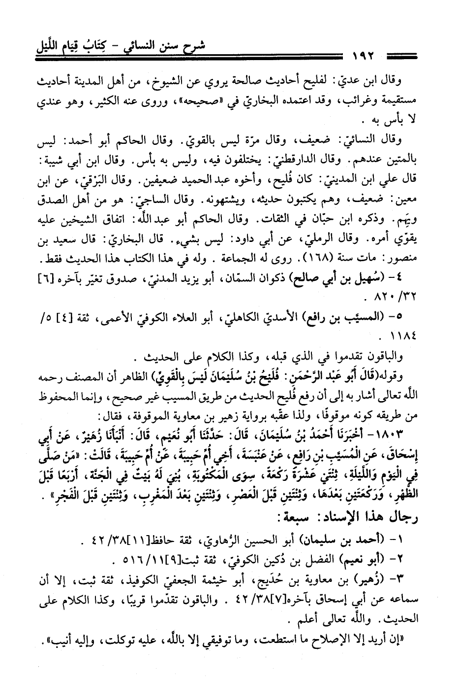 وقوله (قَالَ: أَبُو عَبْد الرَّحْمَنِ: فُلَيحُ بْنُ سُلَيمَانَ لَيْسَ بِالقَوِيِّ) الظاهر أن المصنف -رحمه اللَّه تعالى- أشار به إلى أن رفع فُليح الحديث من طريق المسيب غير صحيح، وإنما المحفوظ من طريقه كونه موقوفًا، ولذا عقّبه برواية زهير بن معاوية الموقوفة، فقال:
