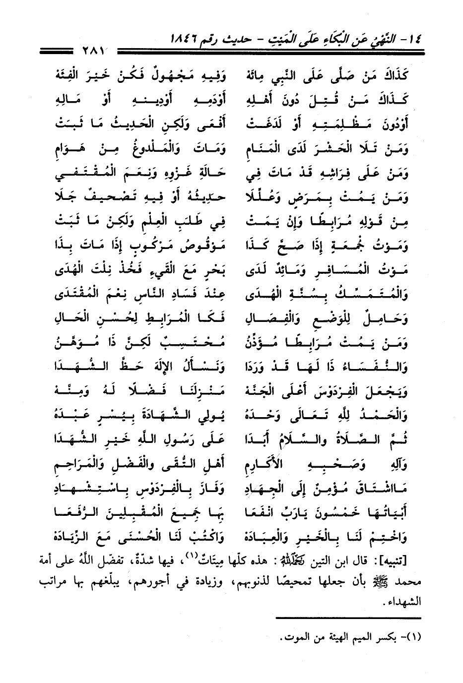 وَيَجْعَلَ الْفِردَوْسَ أَعْلَى الجَنَّهْ ... مَنْزِلَنَا فَضْلًا لَهُ وَمِنَّهْ