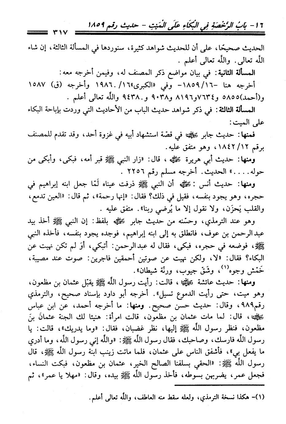 المسألة الثالثة: في ذكر شواهد حديث الباب من الأحاديث التي وردت بإباحة البكاء على الميت: