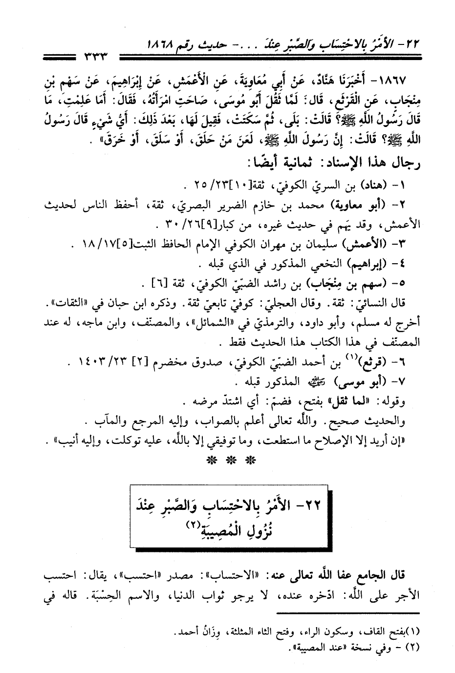 22 - الأَمْرُ بِالاحْتِسَابِ وَالصَّبْرِ عِنْدَ نُزُولِ الْمُصِيبَةِ (¬2)