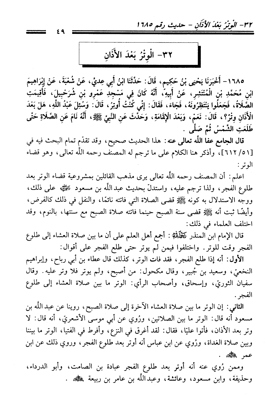 32 - الْوِتْرُ بَعْدَ الأَذَانِ