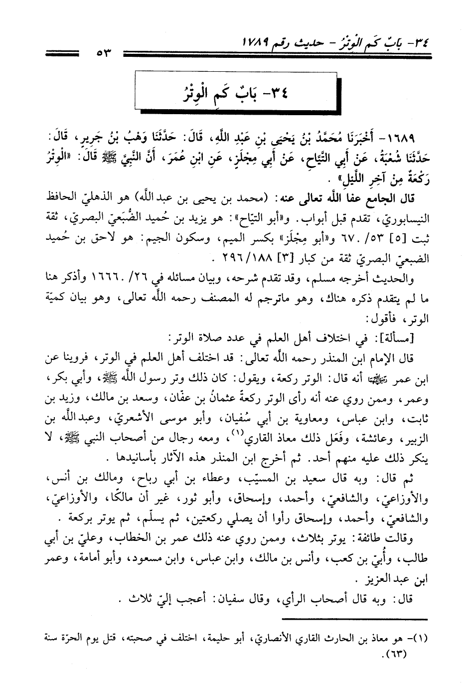 والحديث أخرجه مسلم، وقد تقدم شرحه، وبيان مسائله في 26/ 1666 وأذكر هنا ما لم يتقدم ذكره هناك، وهو ماترجم له المصنف -رحمه اللَّه تعالى-، وهو بيان كميّة الوتر، فأقول: