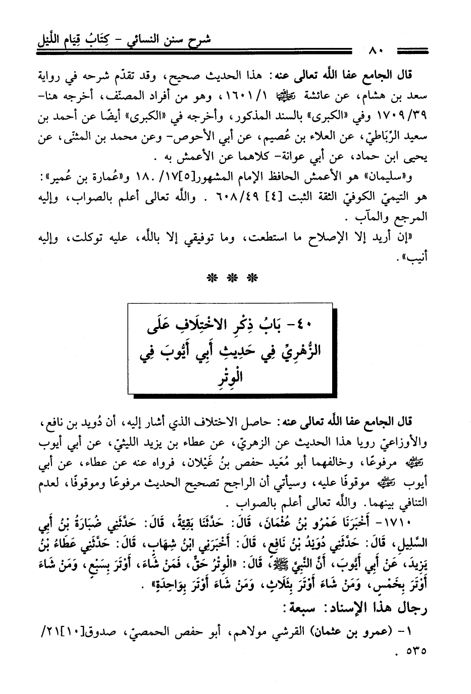 40 - بَابُ ذِكْرِ الاخْتِلَافِ عَلَى الزهْرِيِّ فِي حَدِيثِ أَبِي أَيوبَ فِي الْوِتْرِ