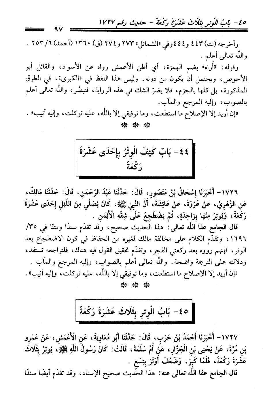 45 - بَابُ الْوِترِ بِثَلَاثَ عَشْرَةَ رَكْعَةً