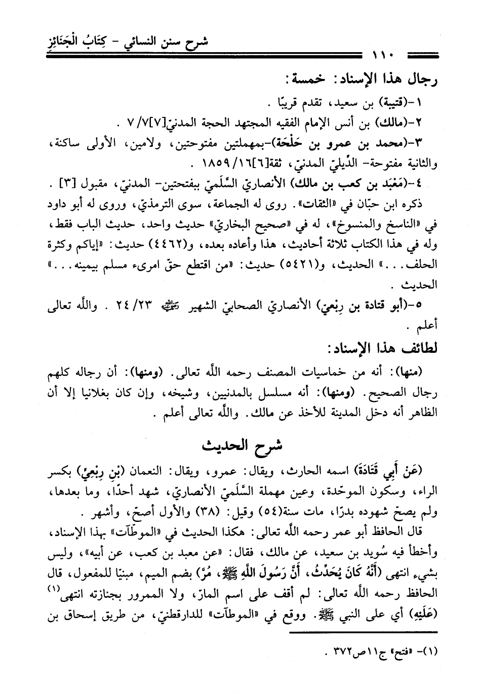 (منها): أنه من خماسيات المصنف -رَحِمَهُ اللَّهُ تَعَالَى-. (ومنها): أن رجاله كلهم رجال الصحيح. (ومنها): أنه مسلسل بالمدنيين، وشيخه، وإن كان بغلانيا إلا أن الظاهر أنه دخل المدينة للأخذ عن مالك. واللَّه تعالى أعلم.