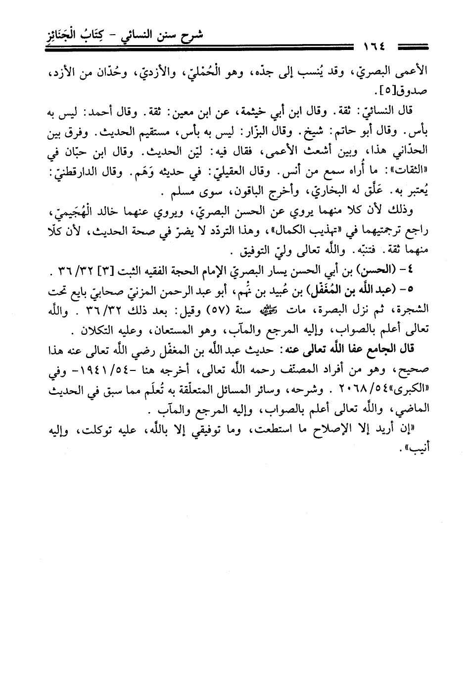 5 - (عبد اللَّه بن المُغَفّل) بن عُبيد بن نَهْم، أبو عبد الرحمن المزنيّ صحابيّ بايع تحت الشجرة، ثم نزل البصرة، مات - رضي اللَّه عنه - سنة (57) وقيل: بعد ذلك 32/ 36. واللَّه تعالى أعلم بالصواب، وإليه المرجع والمآب، وهو المستعان، وعليه التكلان.