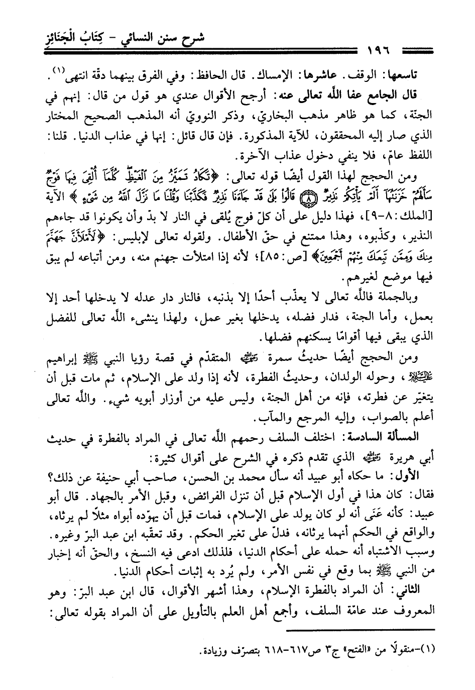تاسعها: الوقف. عاشرها: الامساك. قال الحافظ: وفي الفرق بينهما دقّة انتهى (¬1).