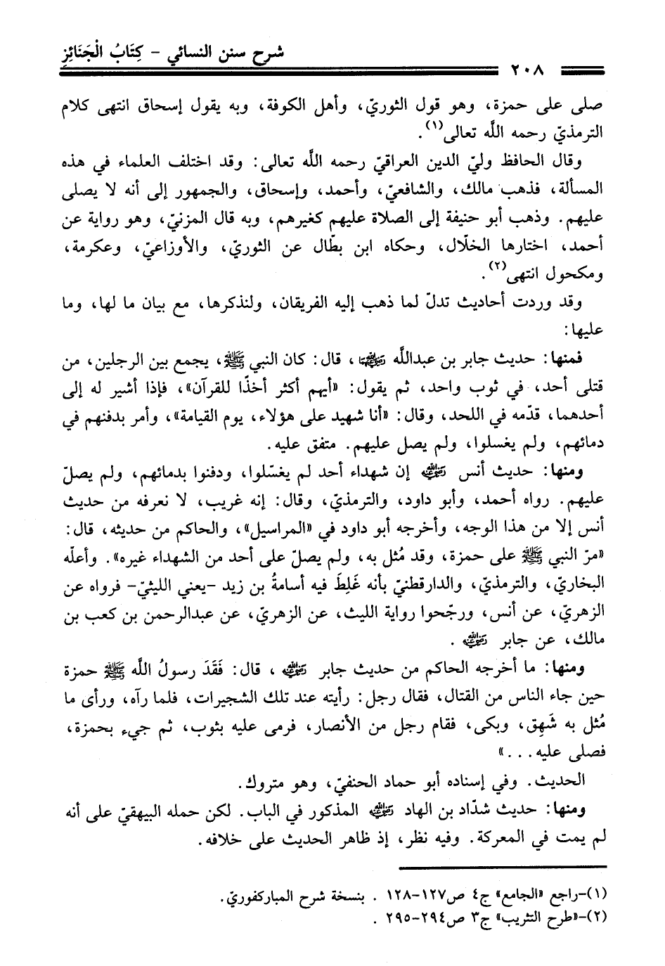 صلى على حمزة، وهو قول الثوريّ، وأهل الكوفة، وبه يقول إسحاق انتهى كلام الترمذيّ -رَحِمَهُ اللَّهُ تَعَالَى- (¬1).