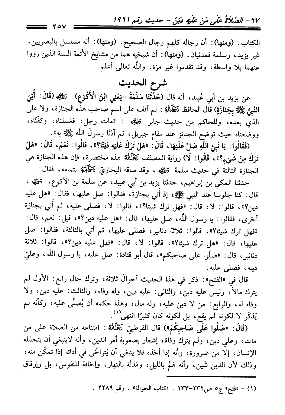 (¬1) - "فتح" ج 5 ص 232 - 233. "كتاب الحوالة". رقم 2289.