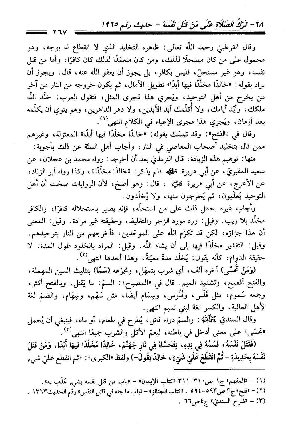 (¬1) - "المفهم" ج 1 ص310 - 311 "كتاب الإيمان" - "باب من قتل نفسه بشيء عُذّب به".