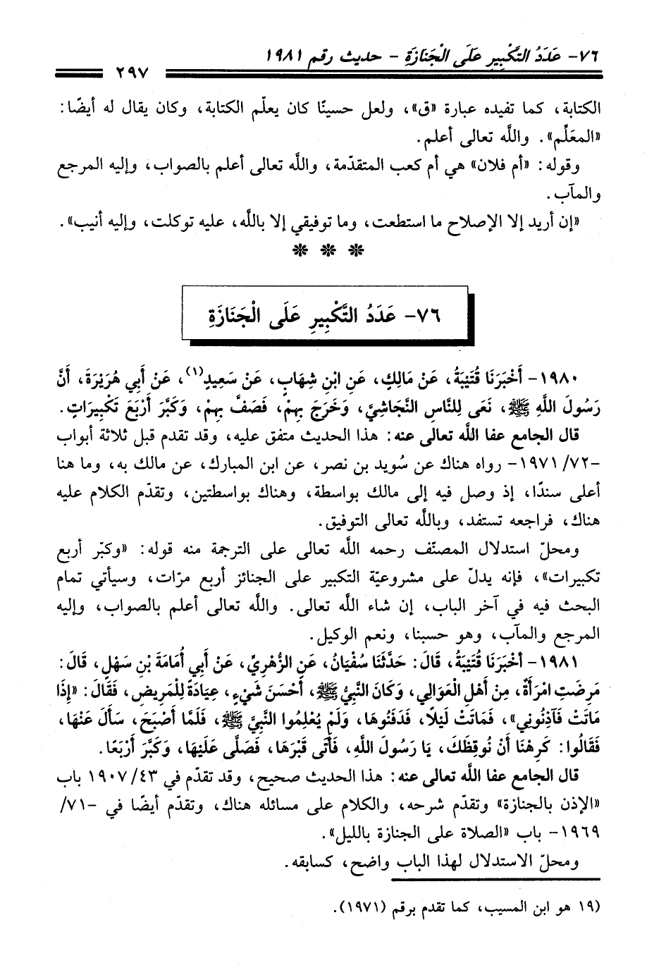 76 - عَدَدُ التَّكْبِيرِ عَلَى الْجَنَازَةِ