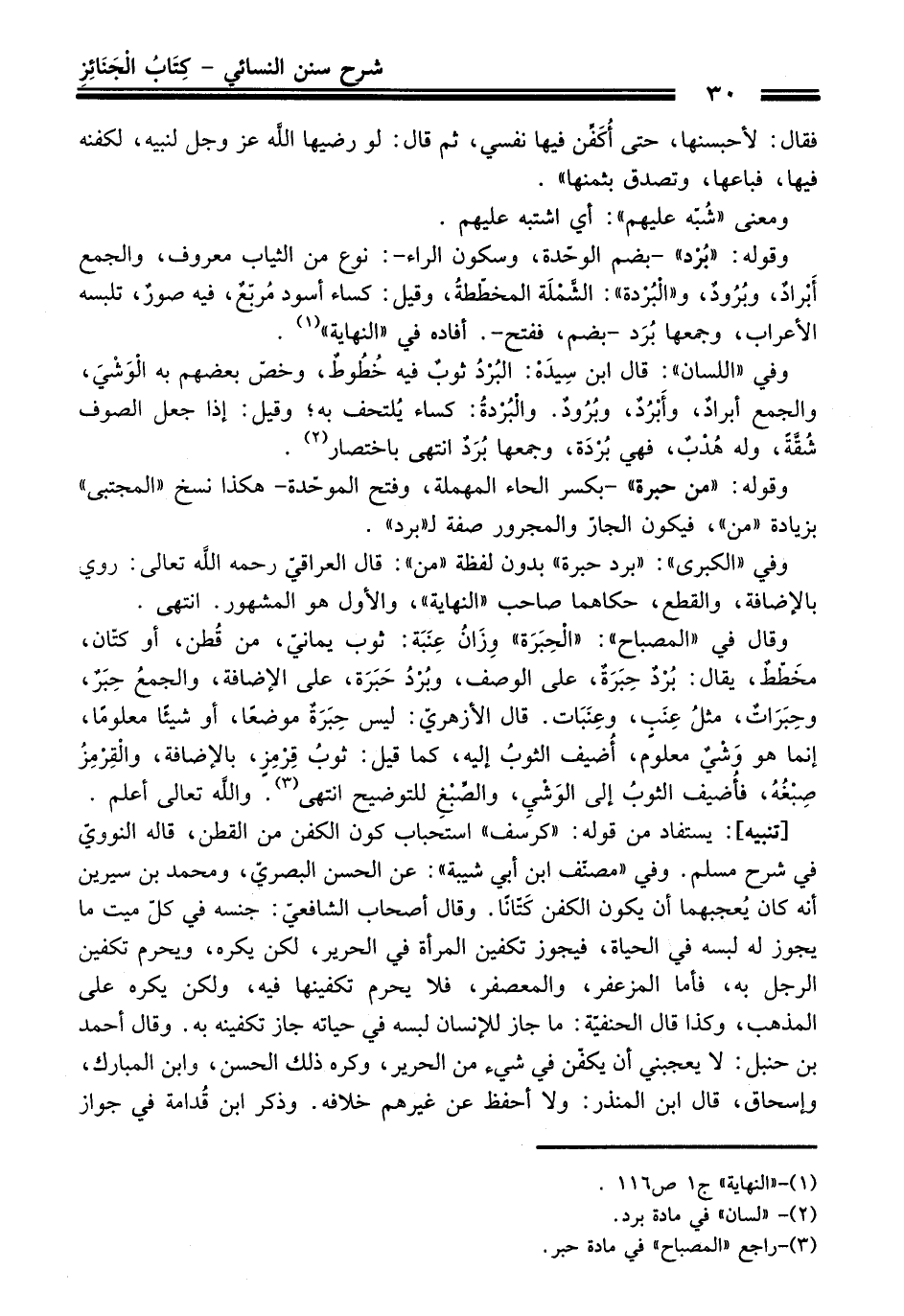 وقوله: "من حبرة" -بكسر الحاء المهملة، وفتح الموحّدة- هكذا نسخ "المجتبي" بزيادة "من"، فيكون الجارّ والمجرور صفة لـ"برد".