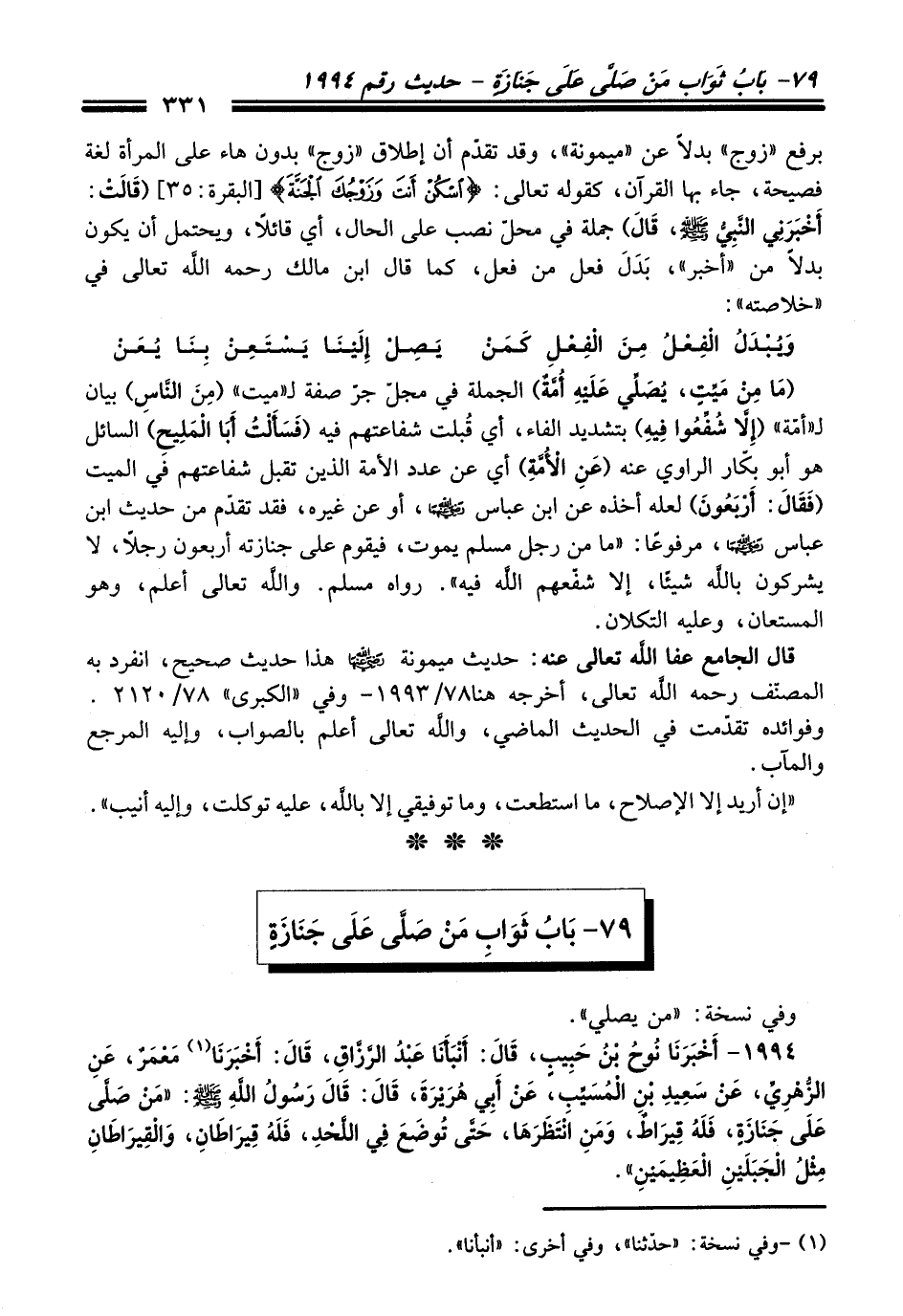 قال الجامع - عفا اللَّه تعالى عنه -: حديث ميمونة - رضي اللَّه عنها - هذا حديث صحيح، انفرد به المصنّف -رَحِمَهُ اللَّهُ تَعَالَى-، أخرجه هنا 78/ 1993 - وفي "الكبرى" 78/ 2120.