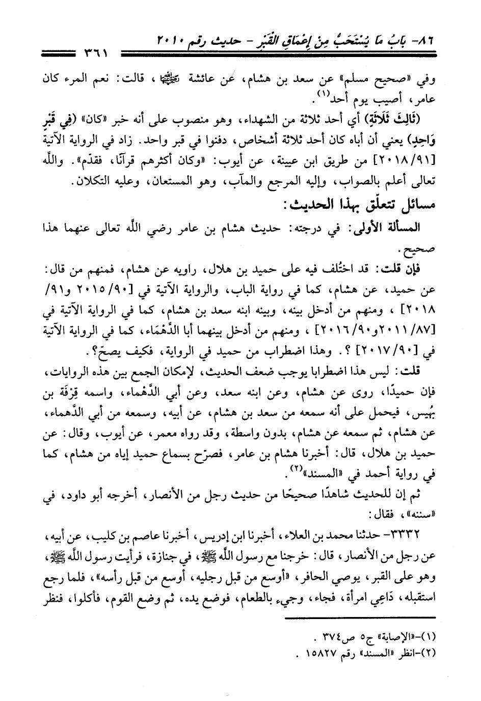 المسألة الأولى: في درجته: حديث هشام بن عامر - رضي اللَّه تعالى عنهما - هذا صحيح.