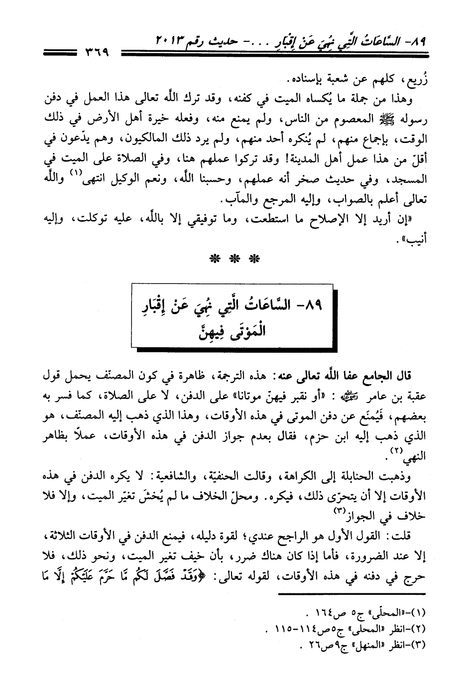 89 - السَّاعَاتُ الَّتِي نُهِيَ عَنْ إِقْبَارِ الْمَوْتَى فِيهِنَّ