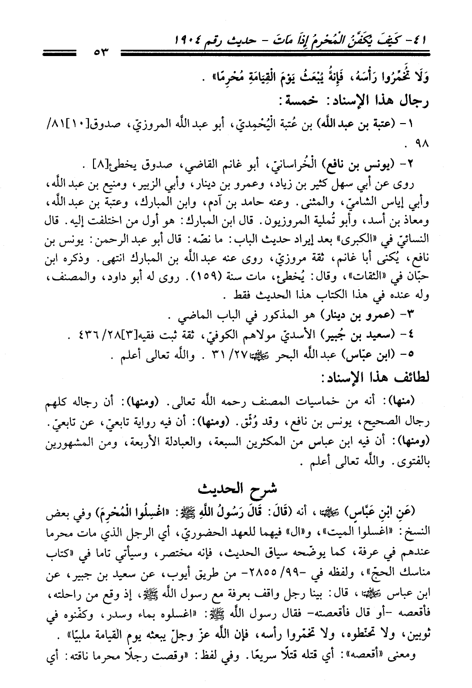 (منها): أنه من خماسيات المصنف -رَحِمَهُ اللَّهُ تَعَالَى-. (ومنها): أن رجاله كلهم رجال الصحيح، يونس بن نافع، وقد وُثّق. (ومنها): أن فيه رواية تابعيّ، عن تابعيّ. (ومنها): أن فيه ابن عباس من المكثرين السبعة، والعبادلة الأربعة، ومن المشهورين بالفتوى. واللَّه تعالى أعلم.