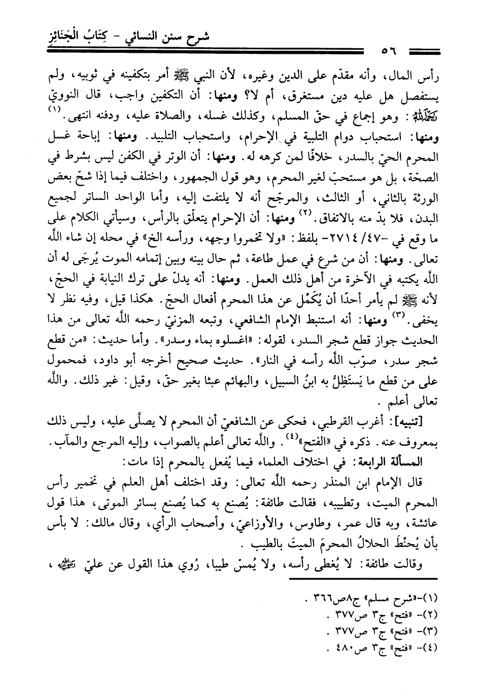 [تنبيه]: أغرب القرطبيّ، فحكى عن الشافعيّ أن المحرم لا يصلَّى عليه، وليس ذلك بمعروف عنه. ذكره في "الفتح" (¬4). واللَّه تعالى أعلم بالصواب، وإليه المرجع والمآب.