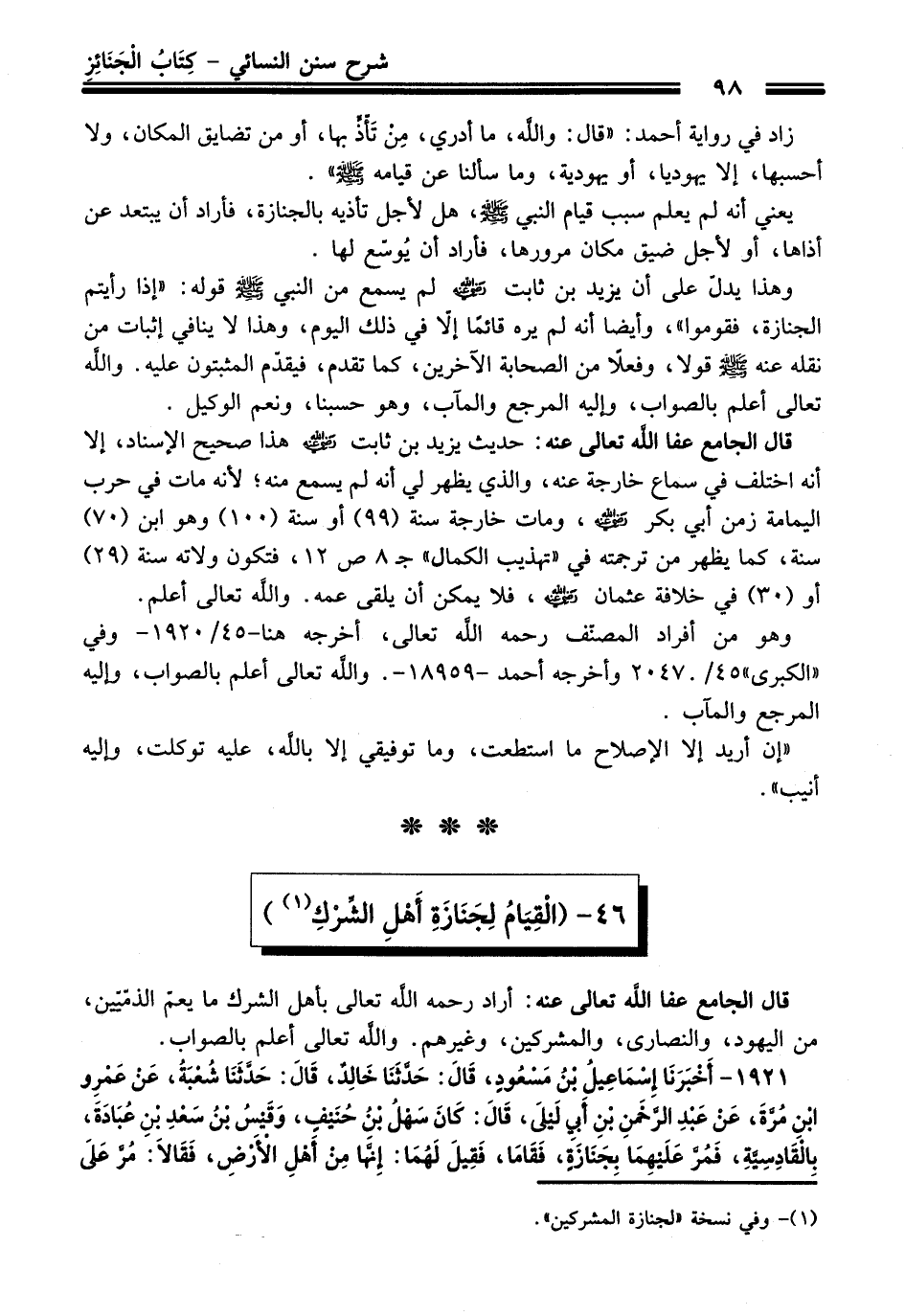 46 - (الْقِيَامُ لِجَنَازَةِ أَهْلِ الشِّرْكِ (¬1))