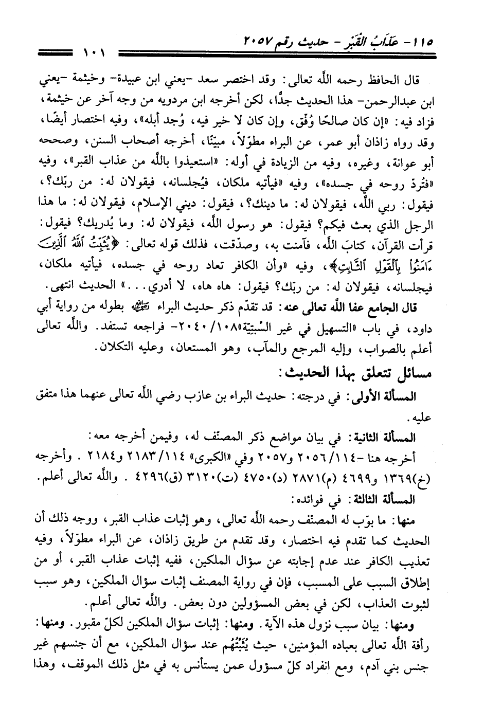 قال الجامع - عفا اللَّه تعالى عنه -: قد تقدّم ذكر حديث البراء - رضي اللَّه عنه - بطوله من رواية أبي داود، في باب "التسهيل في غير السِّبتِيّة" 108/ 2040 - فراجعه تستفد. واللَّه تعالى أعلم بالصواب، وإليه المرجع والمآب، وهو المستعان، وعليه التكلان.